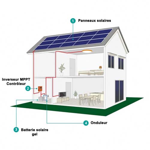 Système solaire autonome pour les habitations ne pouvant pas bénéficier du service public.
